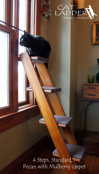 The smart people over at Cat Ladder completely understand the need cats have for heights with this solid ladder that will give Fluffy a fresh view on life. In a variety of stains and finishes this is useful and stylish. $130 Perfect also for the older cat who might have difficulty jumping up this provides a new outlook on the world.